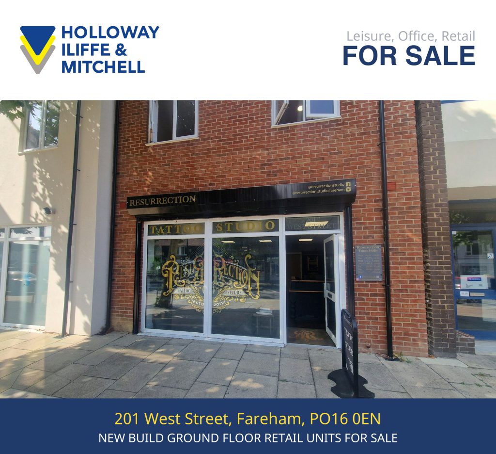 FOR SALE – New build ground floor retail unit for sale offering 537 sq.ft. at £130,000. This converted unit is available within a newly built development located within a prominent position along West Street, Fareham and has 2 allocated parking spaces.