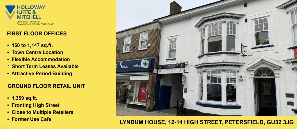 HIGH STREET OFFICE AND RETAIL AVAILABLE IN PETERSFIELD – Flexible office accommodation on short term leases available now on the High Street within this attractive period building. The ground floor retail unit is also now available to let on flexible terms.